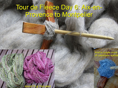 That, right there, in pictorial form, is all the spinning I've managed over the past 6 days. It's not a lot, but there's been a lot of other stuff going on. However, I have grand hopes for next week, when the girls finally finish school, which means no more working for me, and Himself will be away on a business trip, so I won't have to be a grown up when the girls are in bed. Plans for next week include the Shetland fleece, and whatever other bits I fit in around the edges when I get tired of carded Shetland. How's your TdF going?